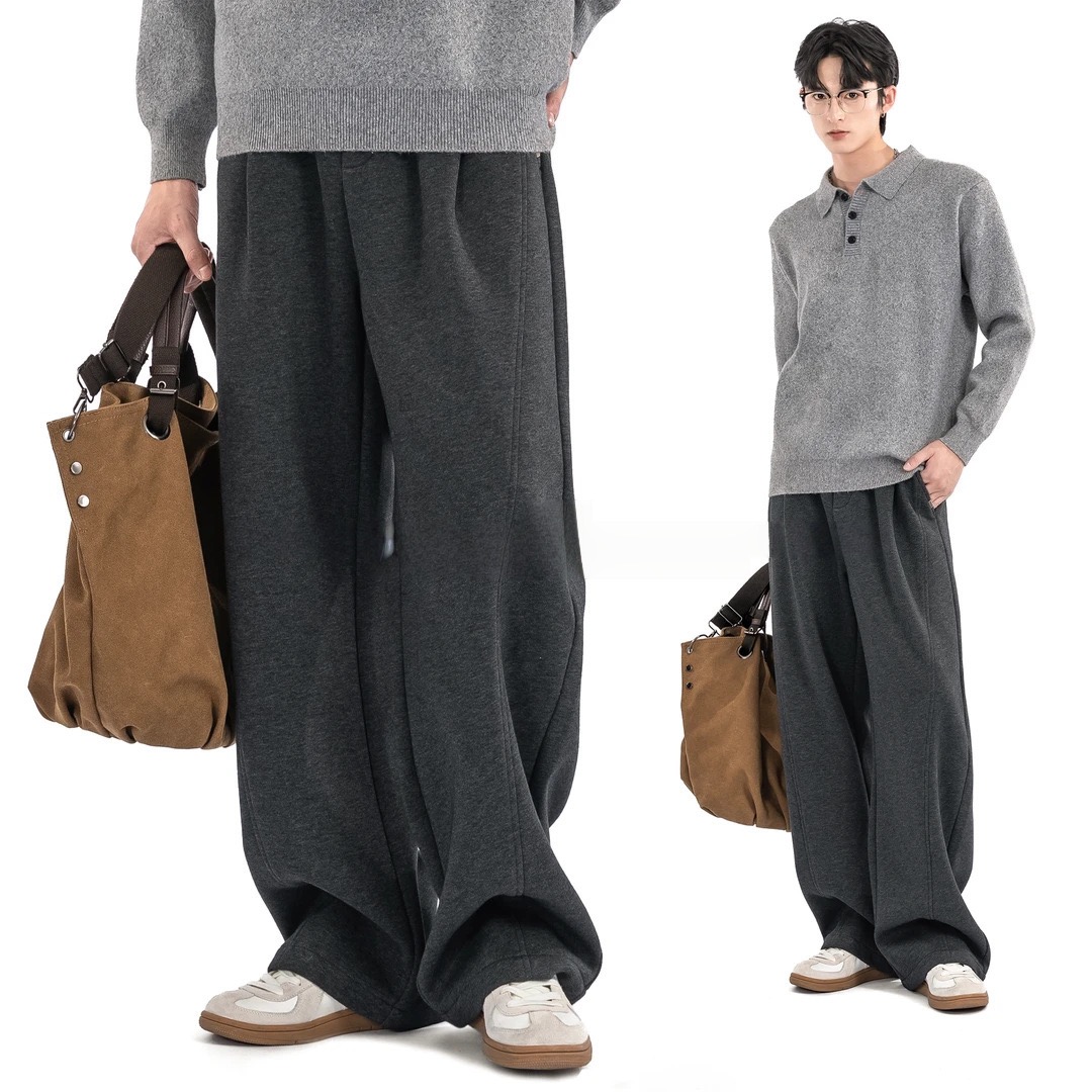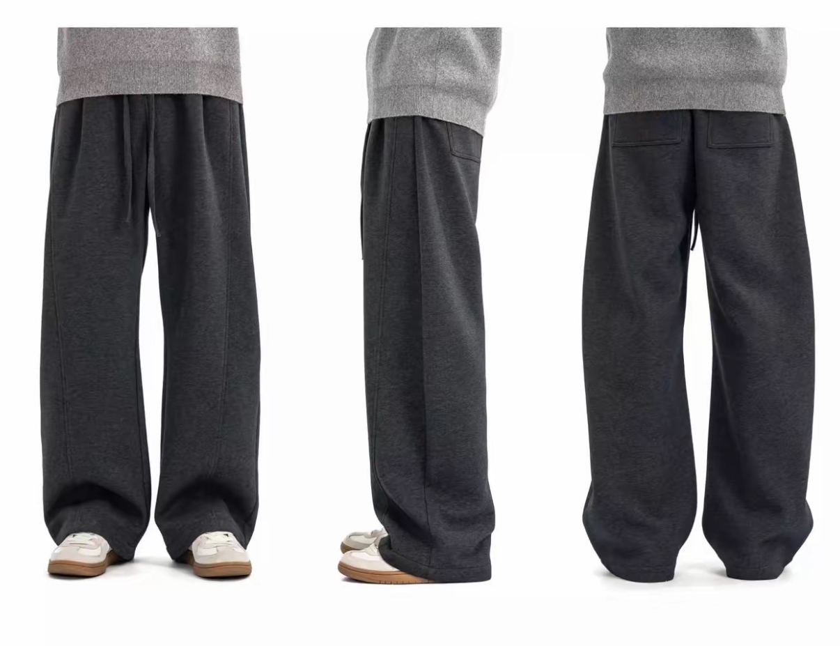 【巨好穿】秋冬美式重磅休閒褲 彎刀抽繩設計 直筒寬鬆 垂感十足|鬆緊褲腰設計