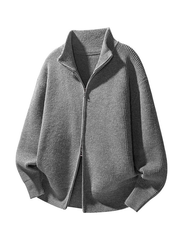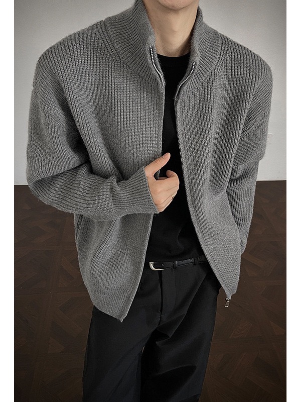 秋冬立領雙拉鍊毛衣 針織外套 美式復古風