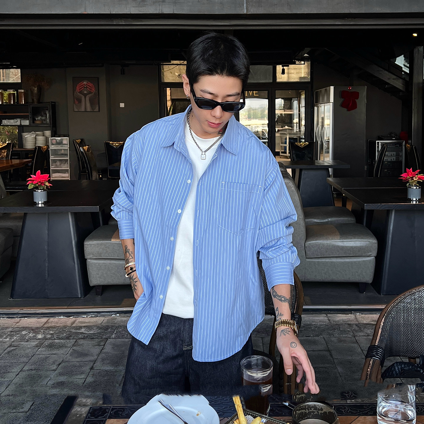 韓版襯衫 條紋男士襯衫 輕薄外套 春秋款|休閒寬鬆輕商務