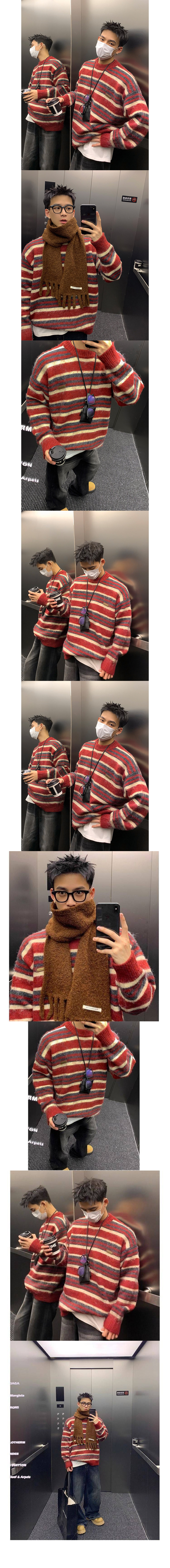 【新年必備】美式復古風 條紋撞色 圓領寬鬆針織毛衣