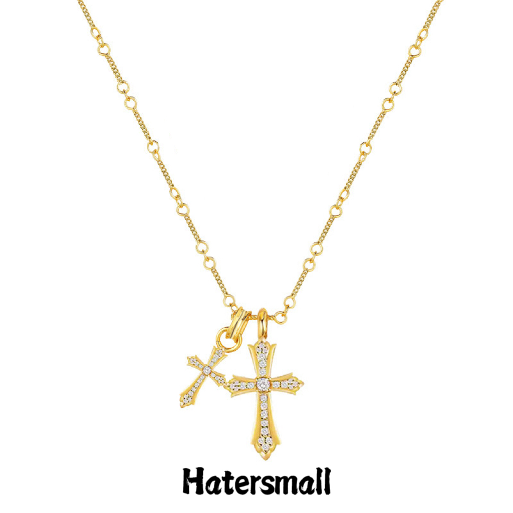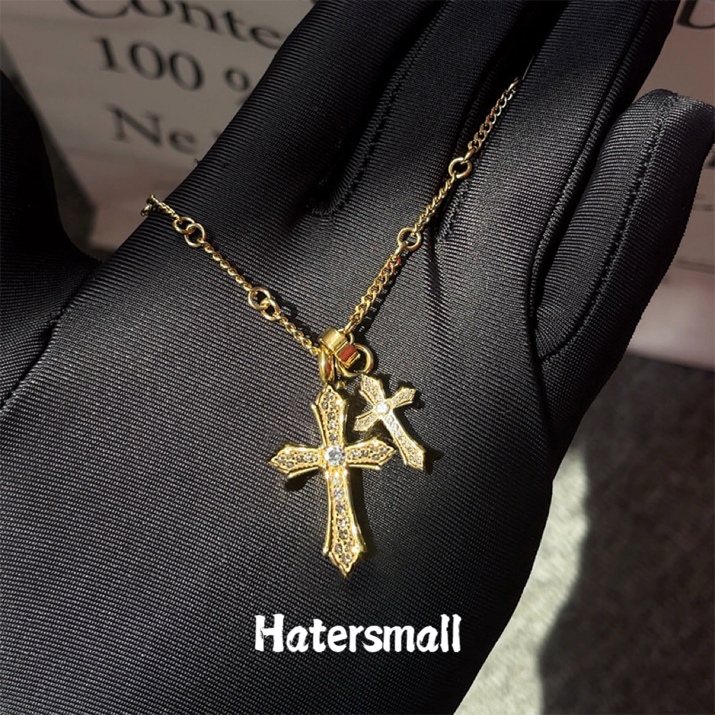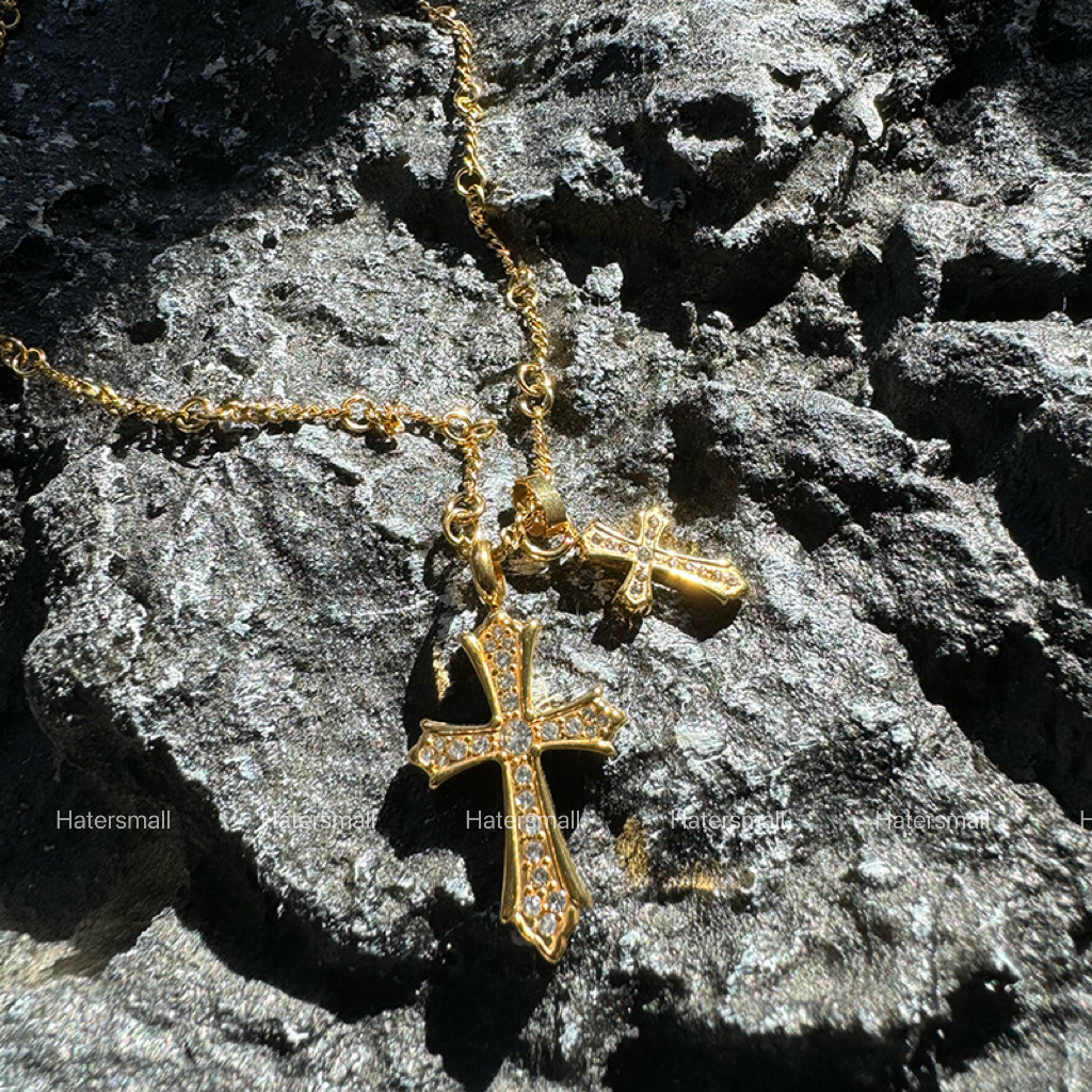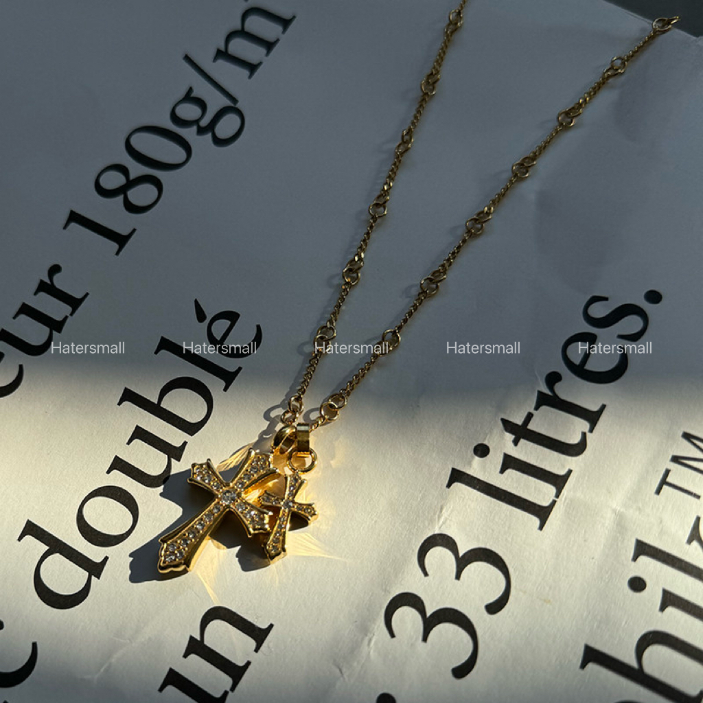 AKK 雙十字架鈦鋼項鍊 滿鑽設計 高質感搭配