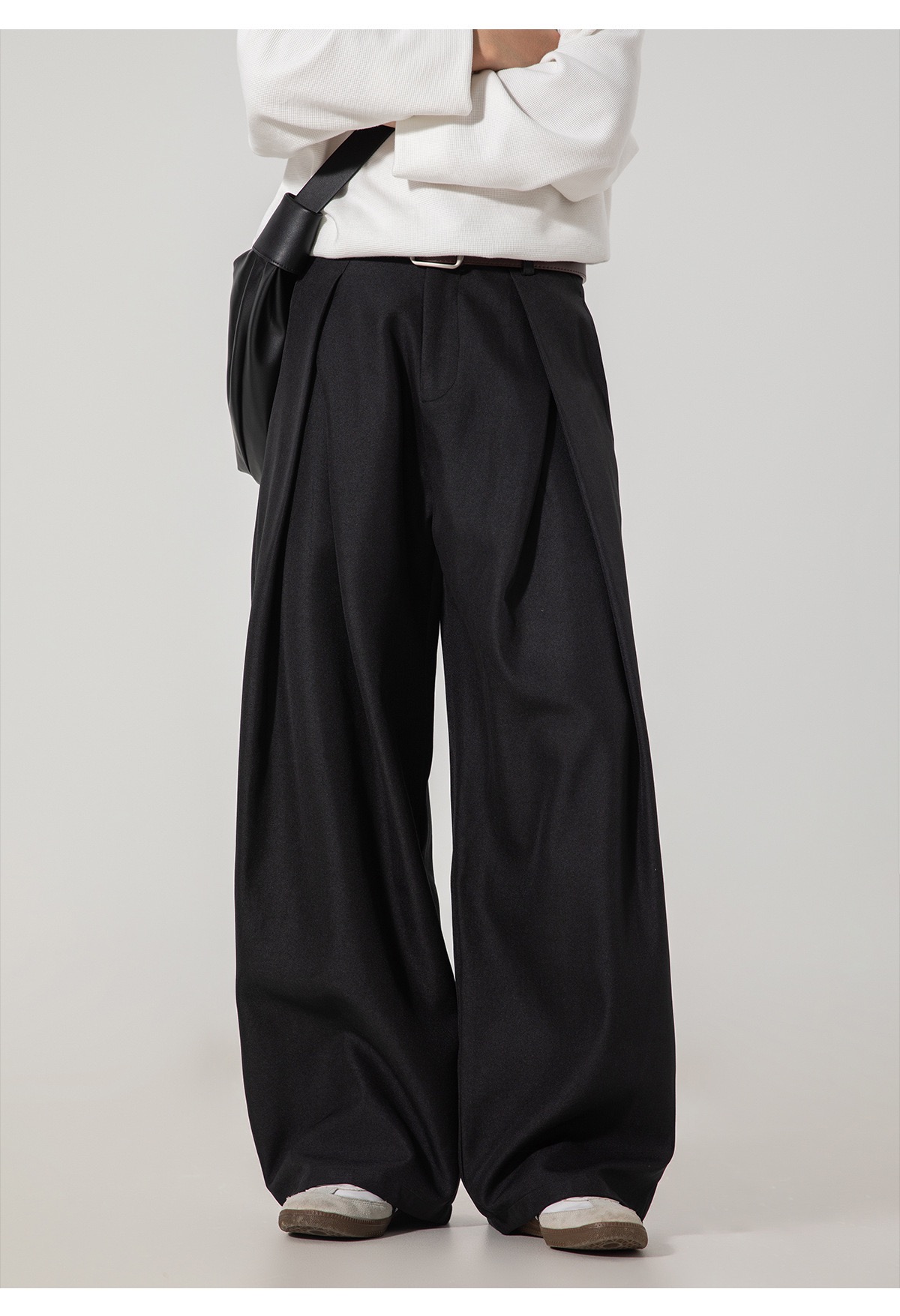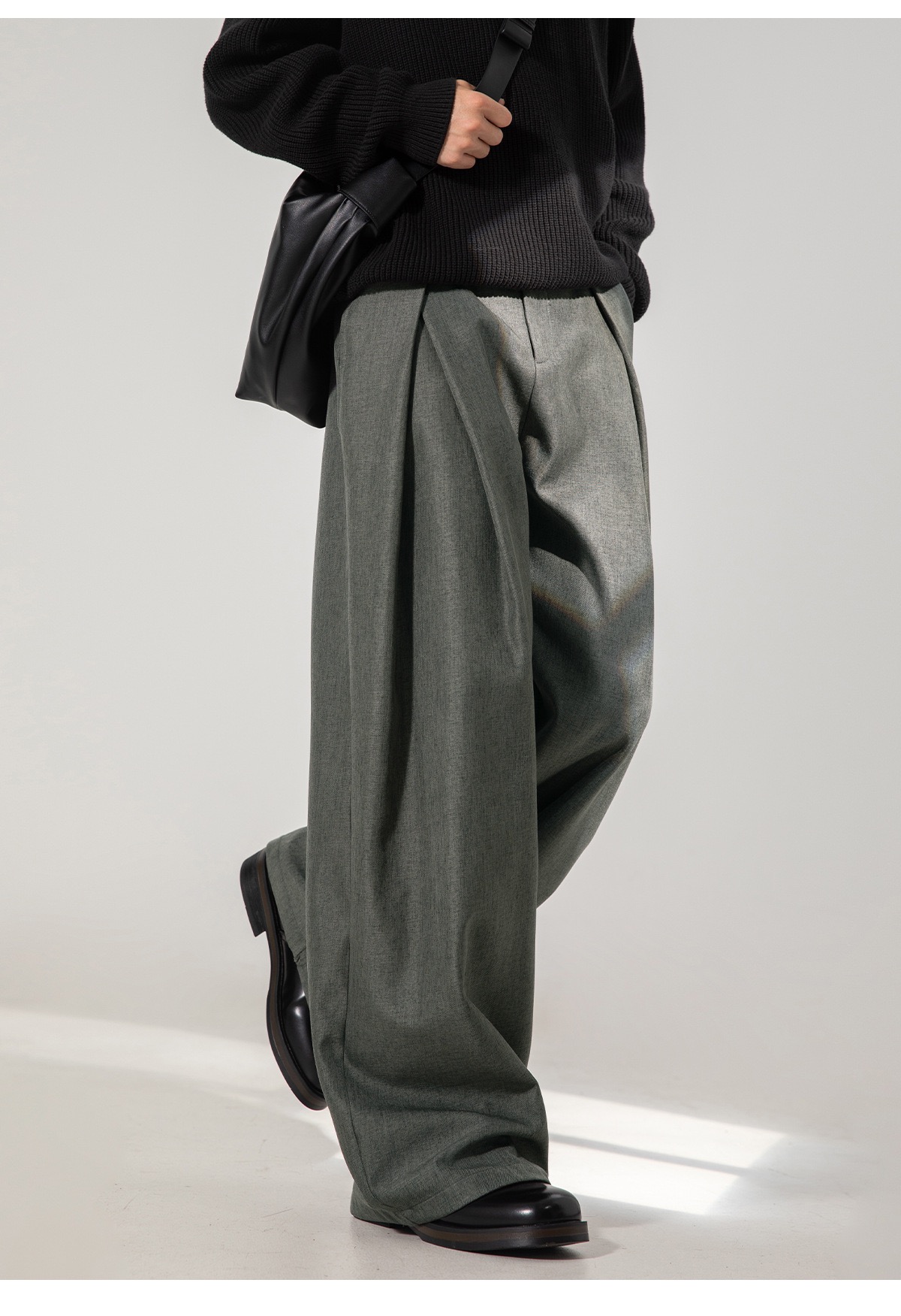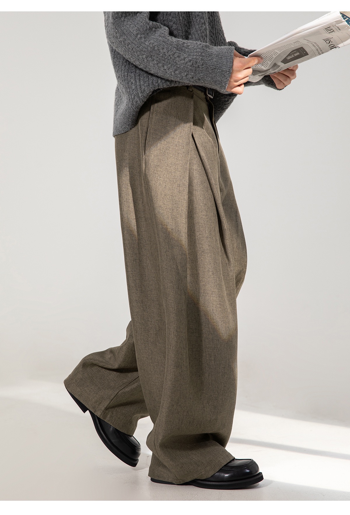 秋冬款 寬鬆直筒西褲 打摺復古 前腰直筒/後腰收緊設計