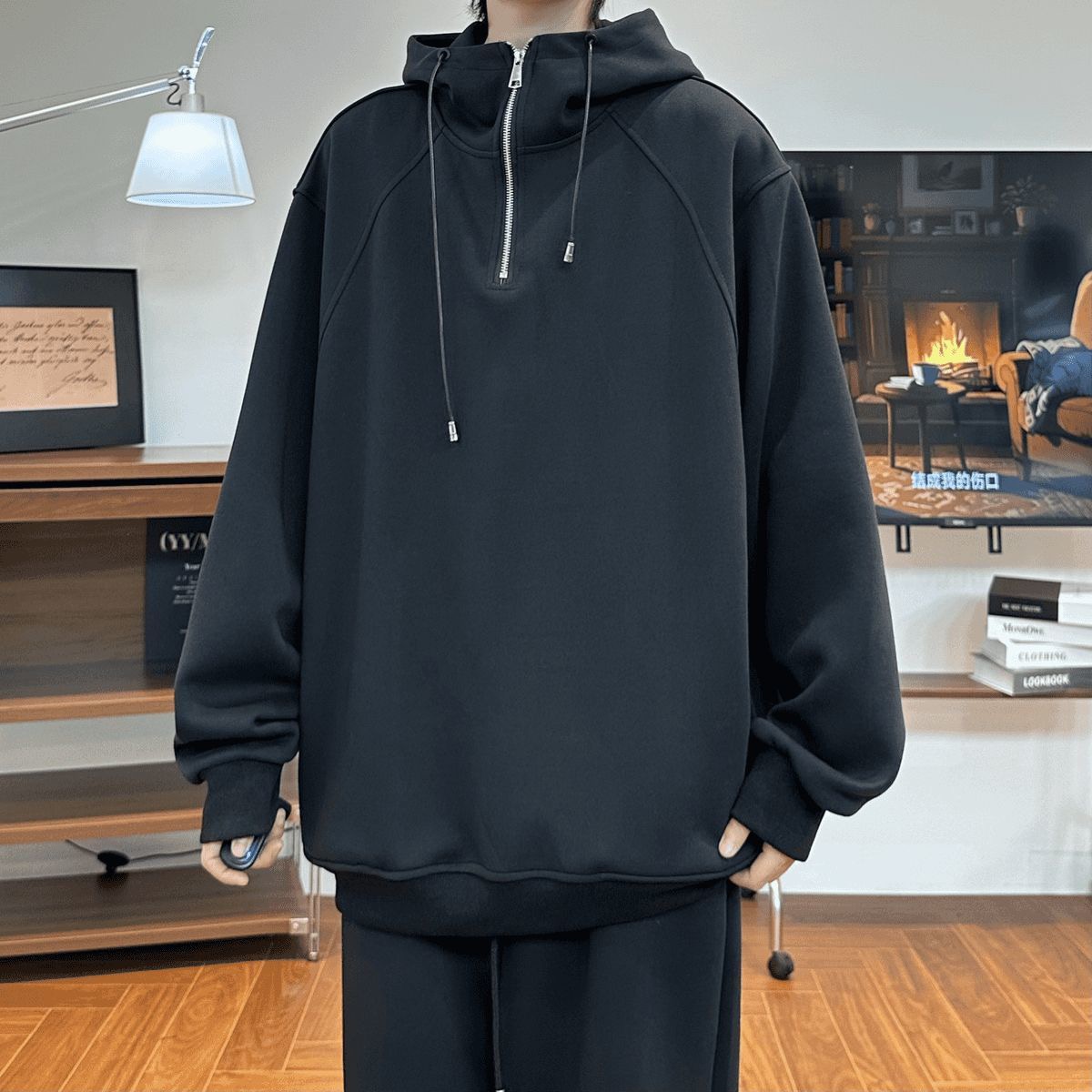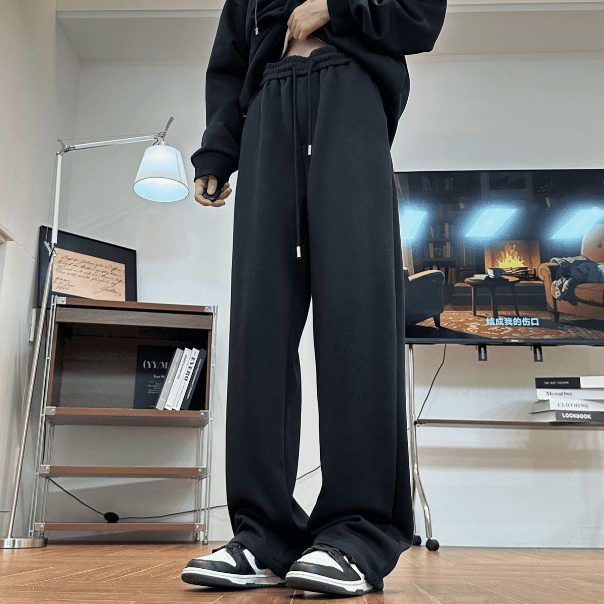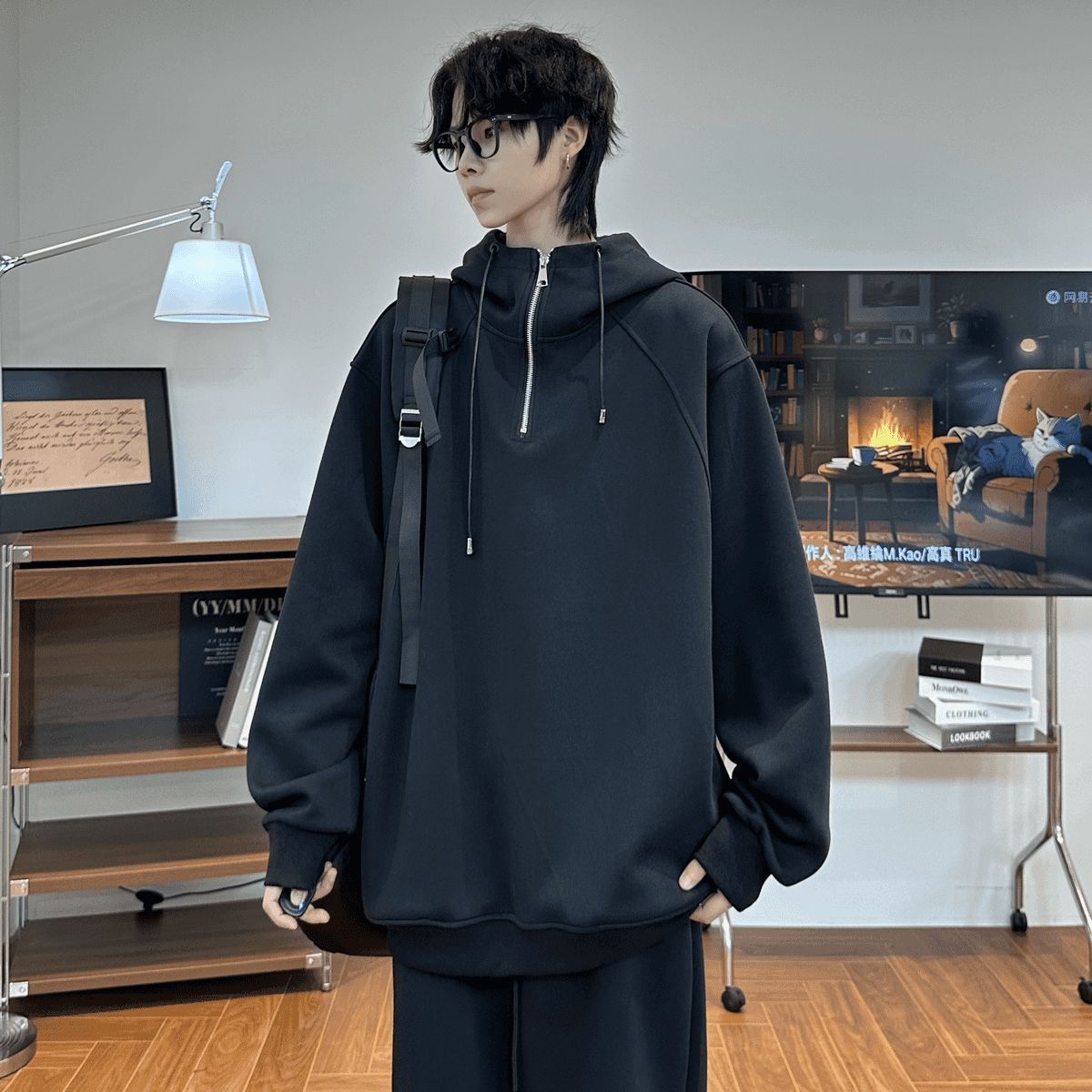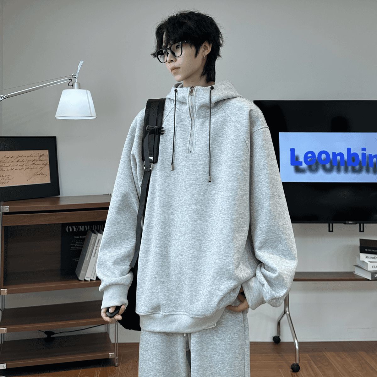CHILL感十足 純棉連帽 寬鬆衛衣套裝|上衣+鬆緊腰褲子 寬鬆直筒