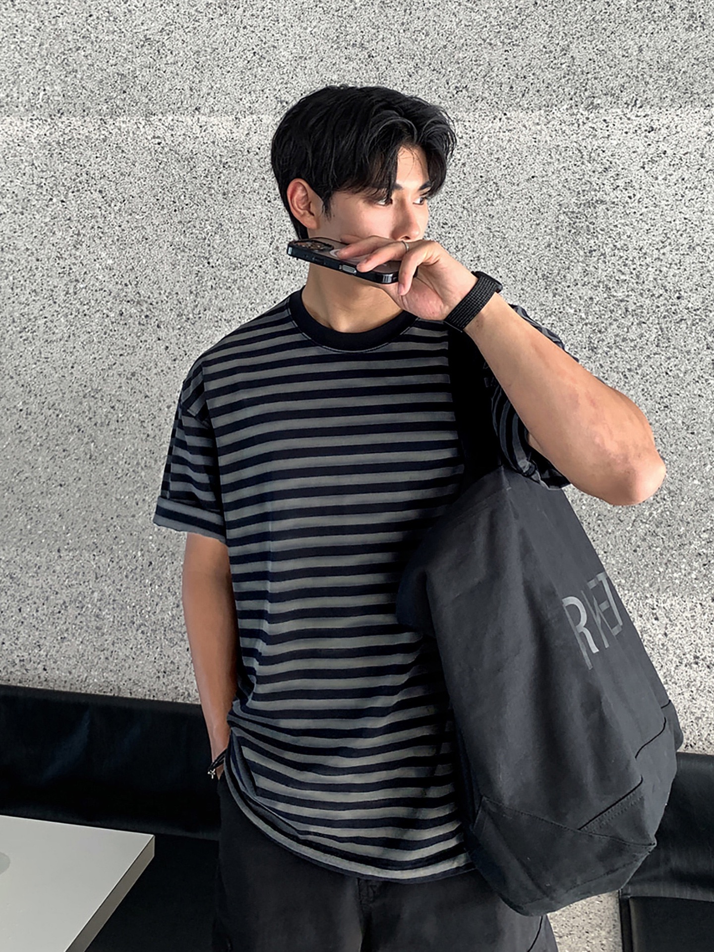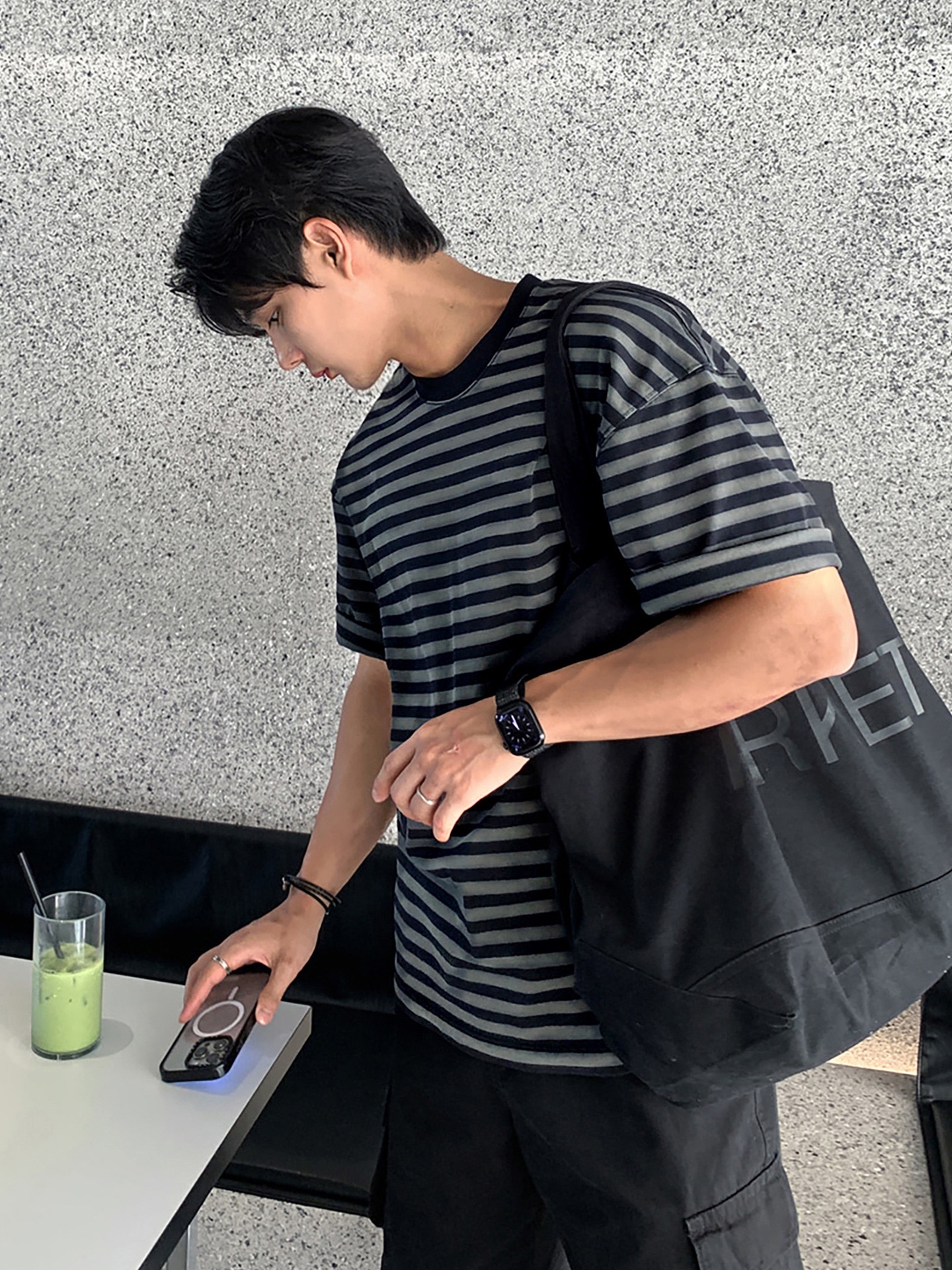 AS 純棉落肩TEE 條紋短袖|寬鬆親膚日系感