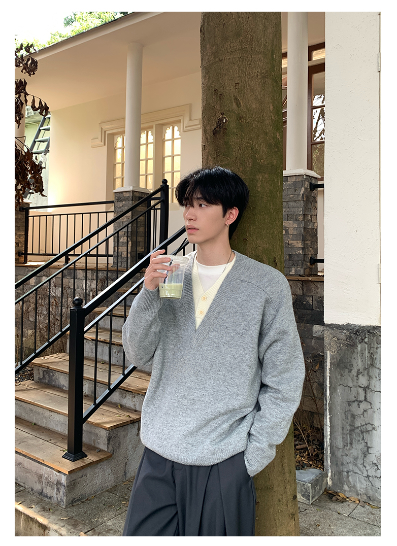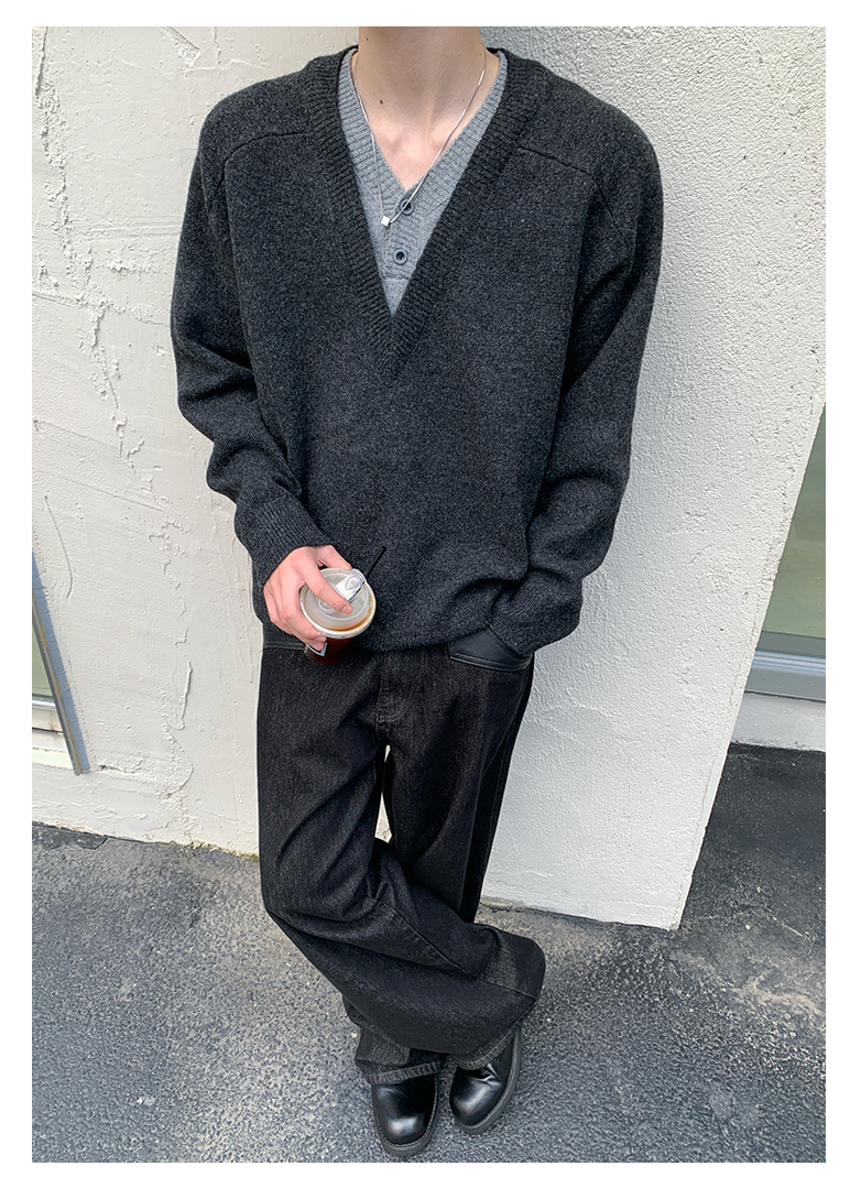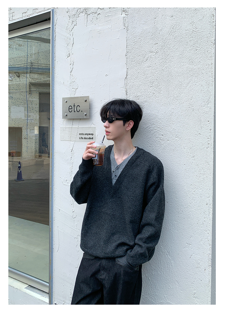HT 美式復古慵懶風毛衣 假兩件設計|寬鬆親膚 百搭有質感 重磅