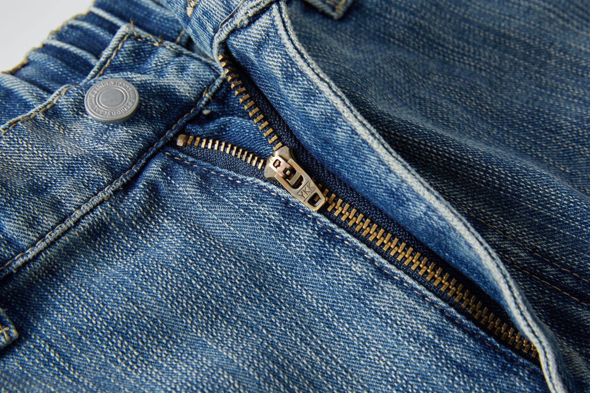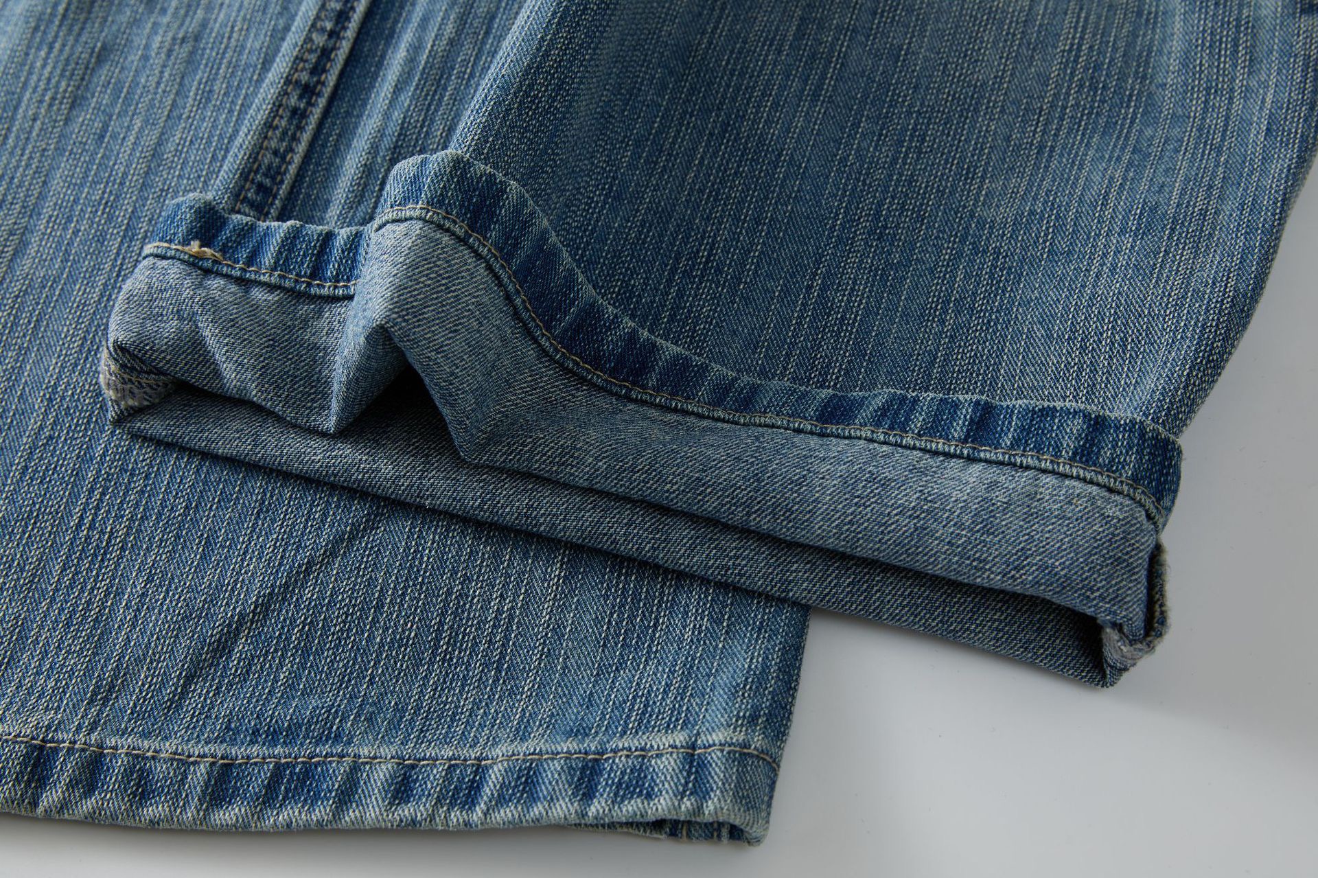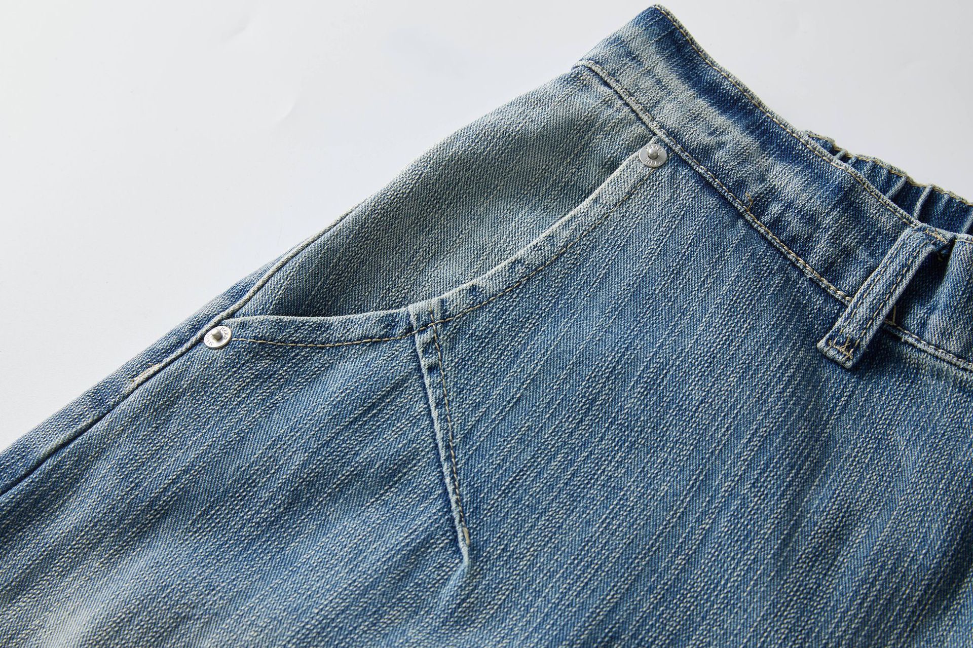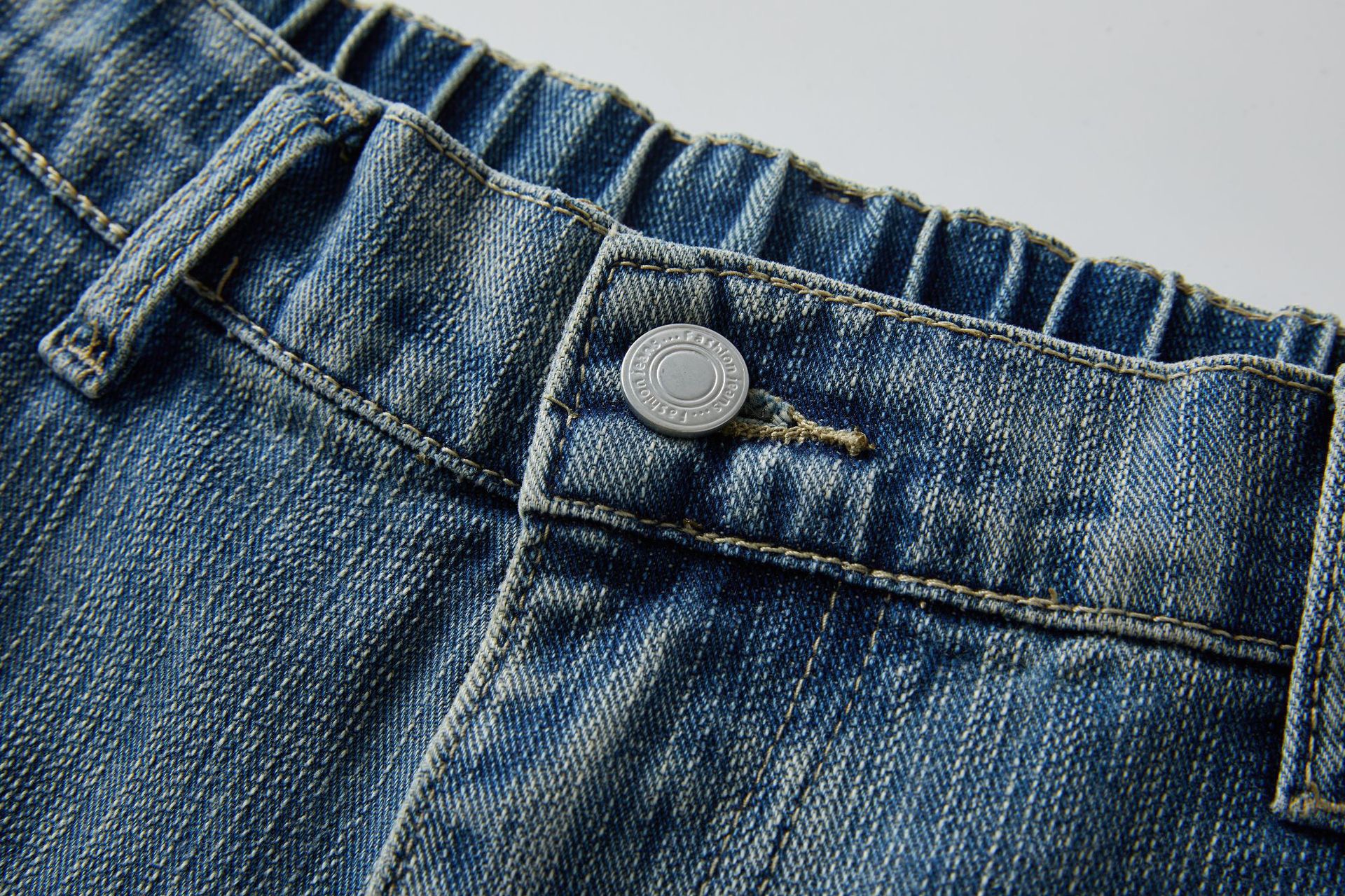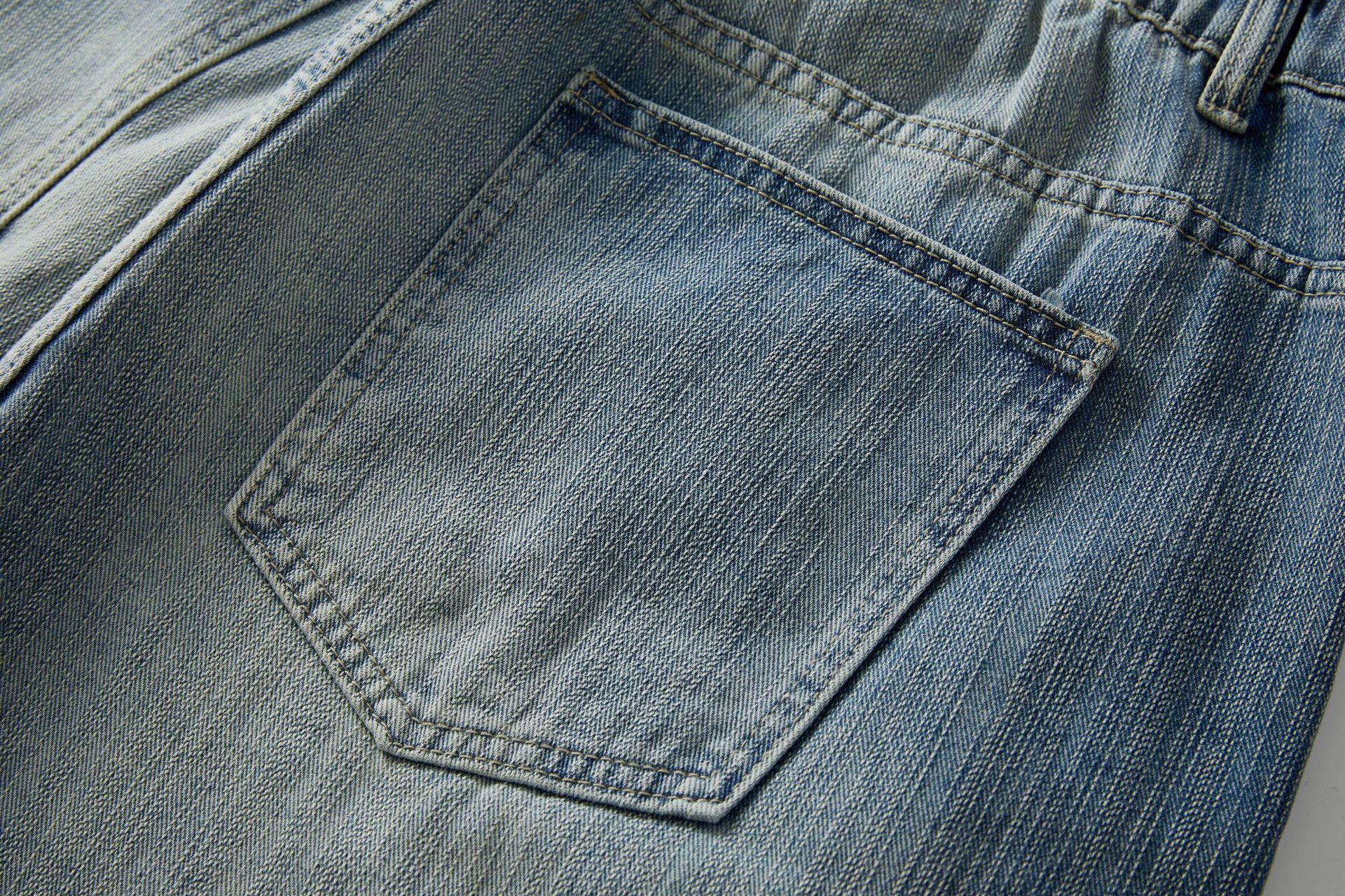 痞帥街頭風 竹節拼接牛仔褲 水洗舊復古藍 寬鬆直通|後腰鬆緊