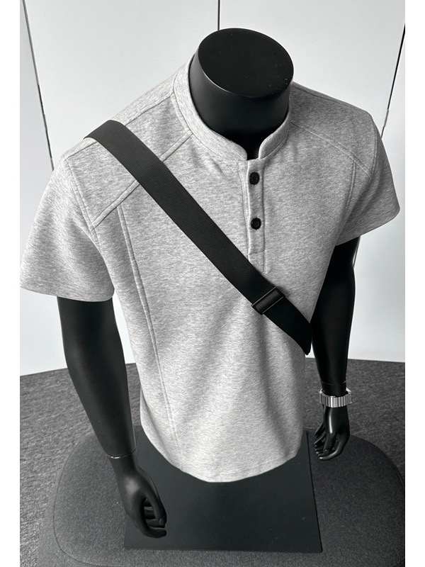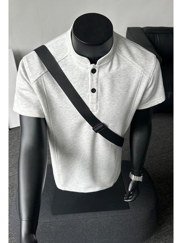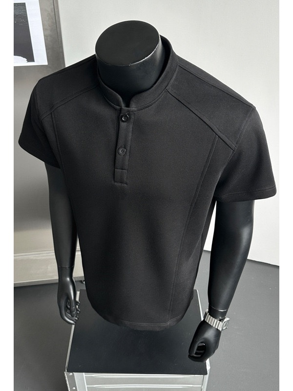 高街風 亨利領素面TEE 輕商務POLO衫 寬鬆小立領 挺拔顯肩寬