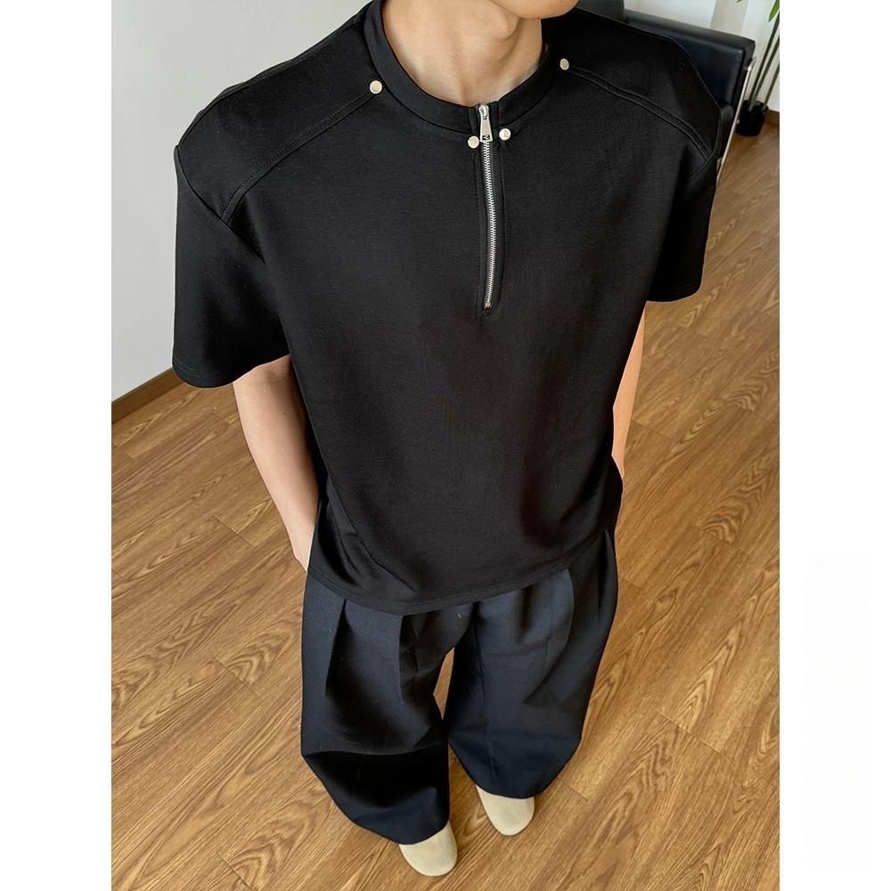 高街風 卯釘亨利領素面TEE 輕商務POLO衫 寬鬆小立領 挺拔顯肩寬