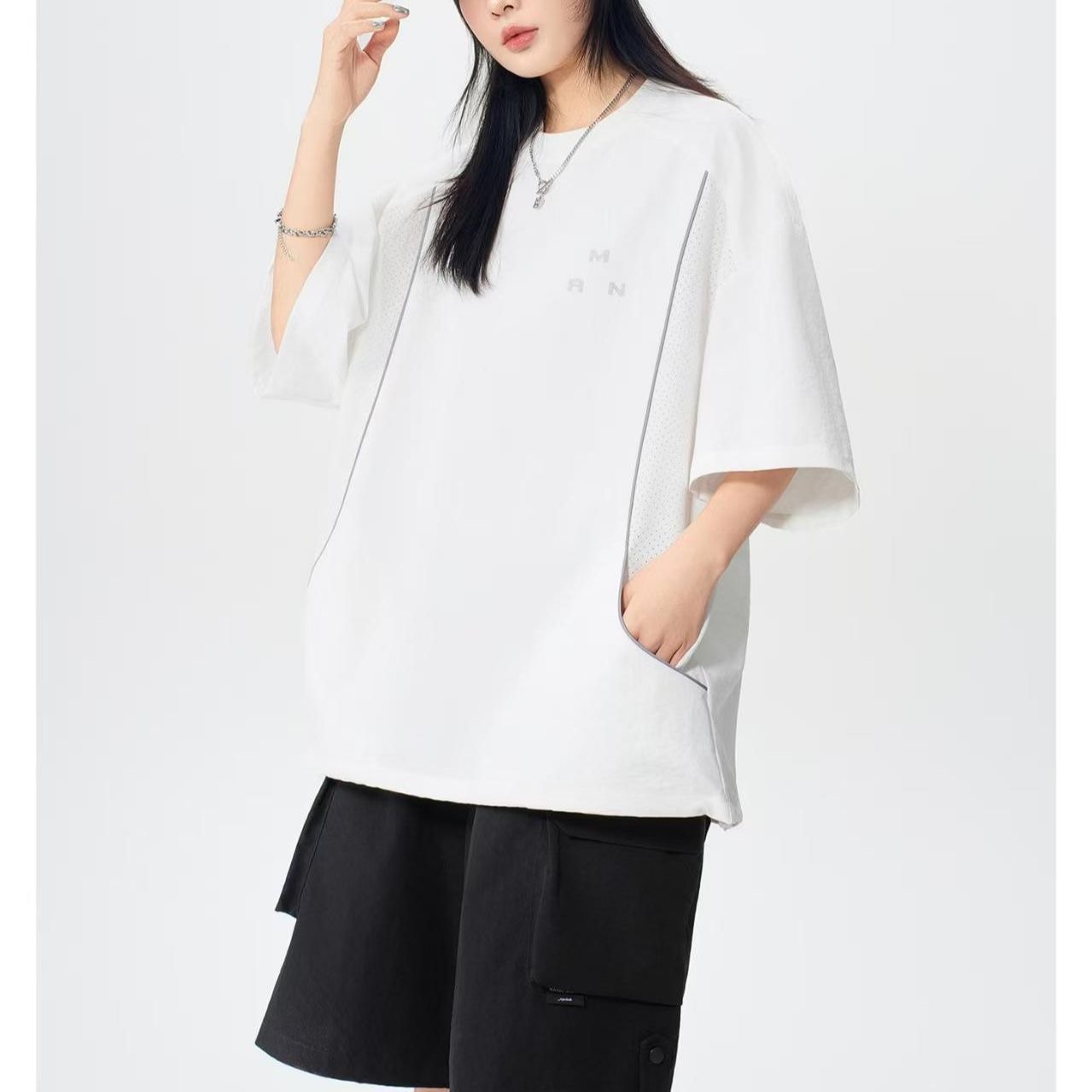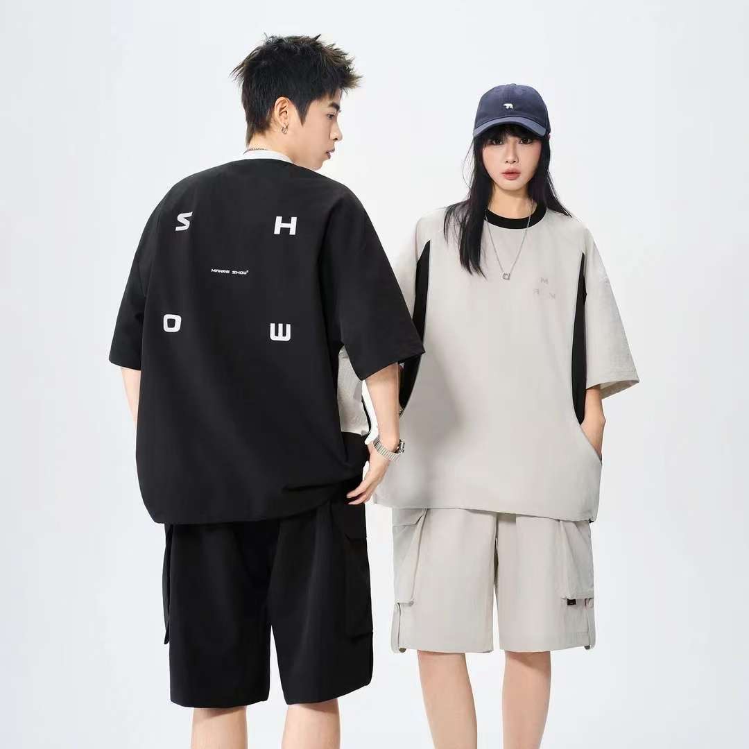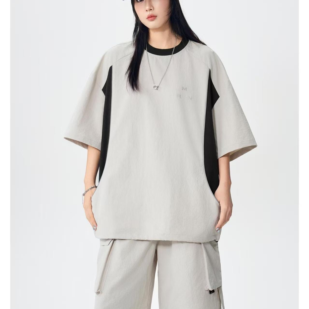 MAN 美式速干運動套裝 圆领拼色上衣+鬆緊腰工裝短褲|寬鬆休閒凉感